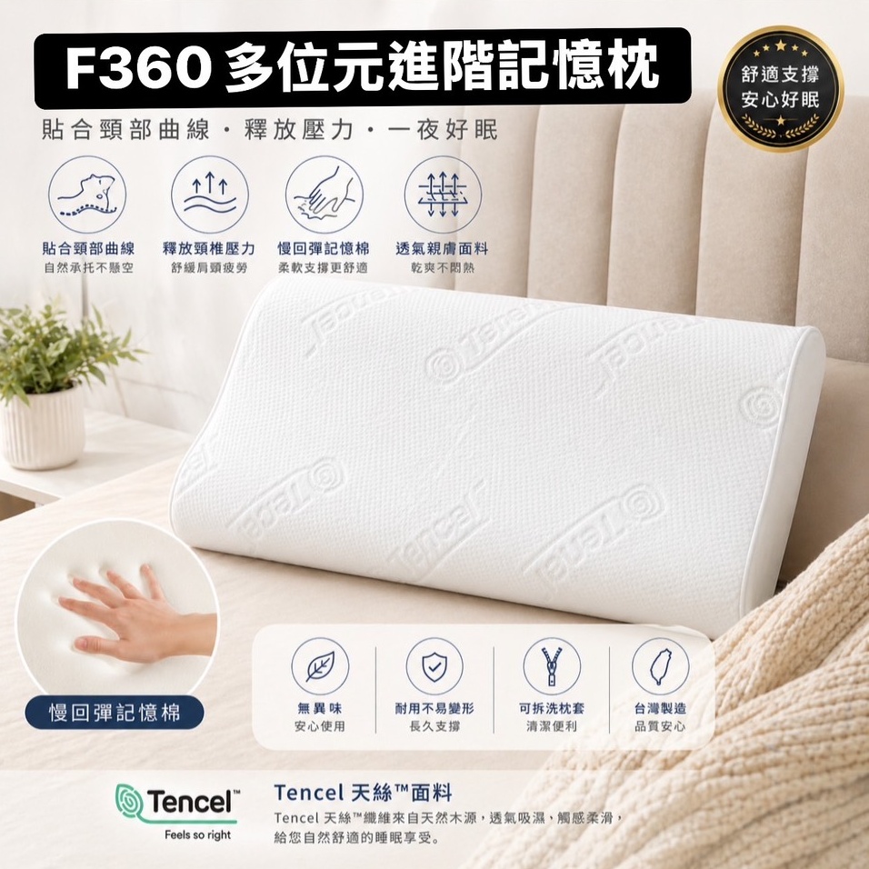 ●專為肩頸痠痛族群設計● ●人體工學貼合頸部線條● ◆帶給您度假般的舒適好眠 ◆側睡/仰睡皆適宜 ◆萊賽爾纖維(天絲™) 表布,絲滑觸感 ◆親膚透氣不悶熱,一體成型枕 ◆賦予頭頸最佳支撐,釋壓慢回彈 ◆親水性記憶棉枕心,不因溫度影響柔軟彈性 ◆多孔隙棉體,維持透氣不悶熱的舒適睡感 ◆進階等級防黴、防螨、抗菌專利處理